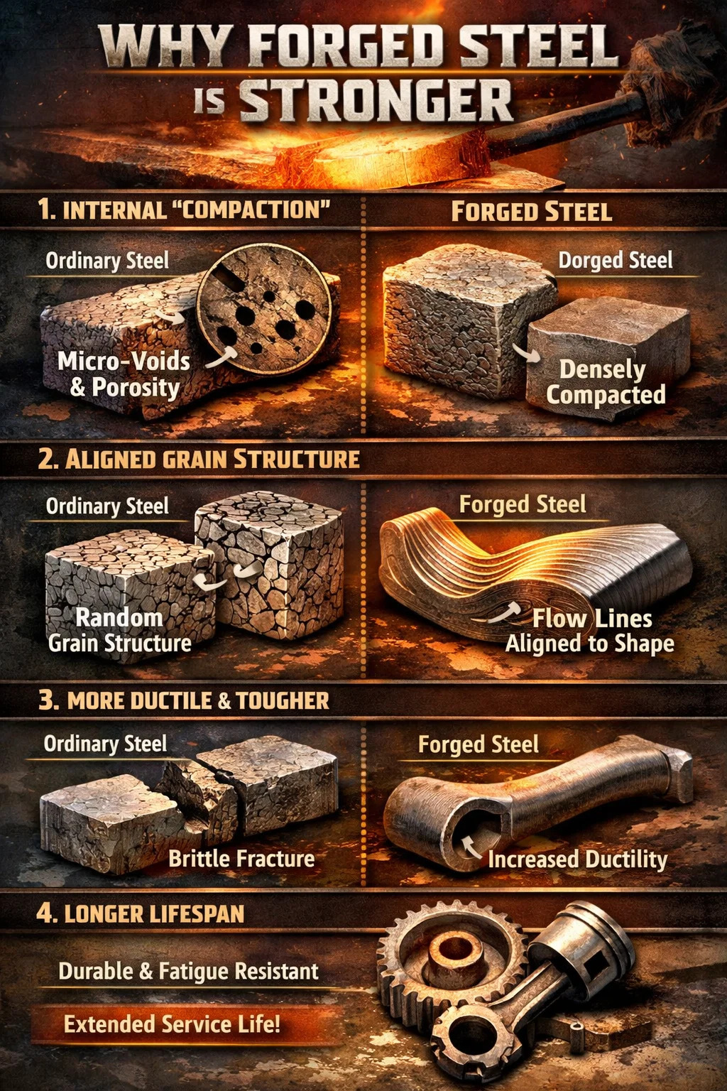 W procesie kucia stali metal ulega „głębokiej ewolucji” od środka. Oto kilka typowych powodów, dla których jest silniejszy: