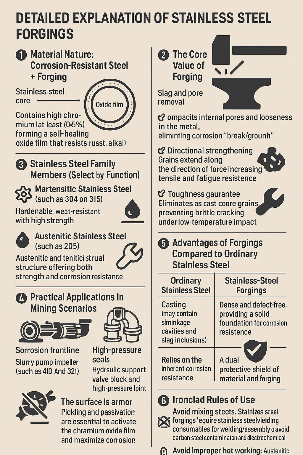 1. Materialny charakter: stalowe kucie stali odporne na korozję