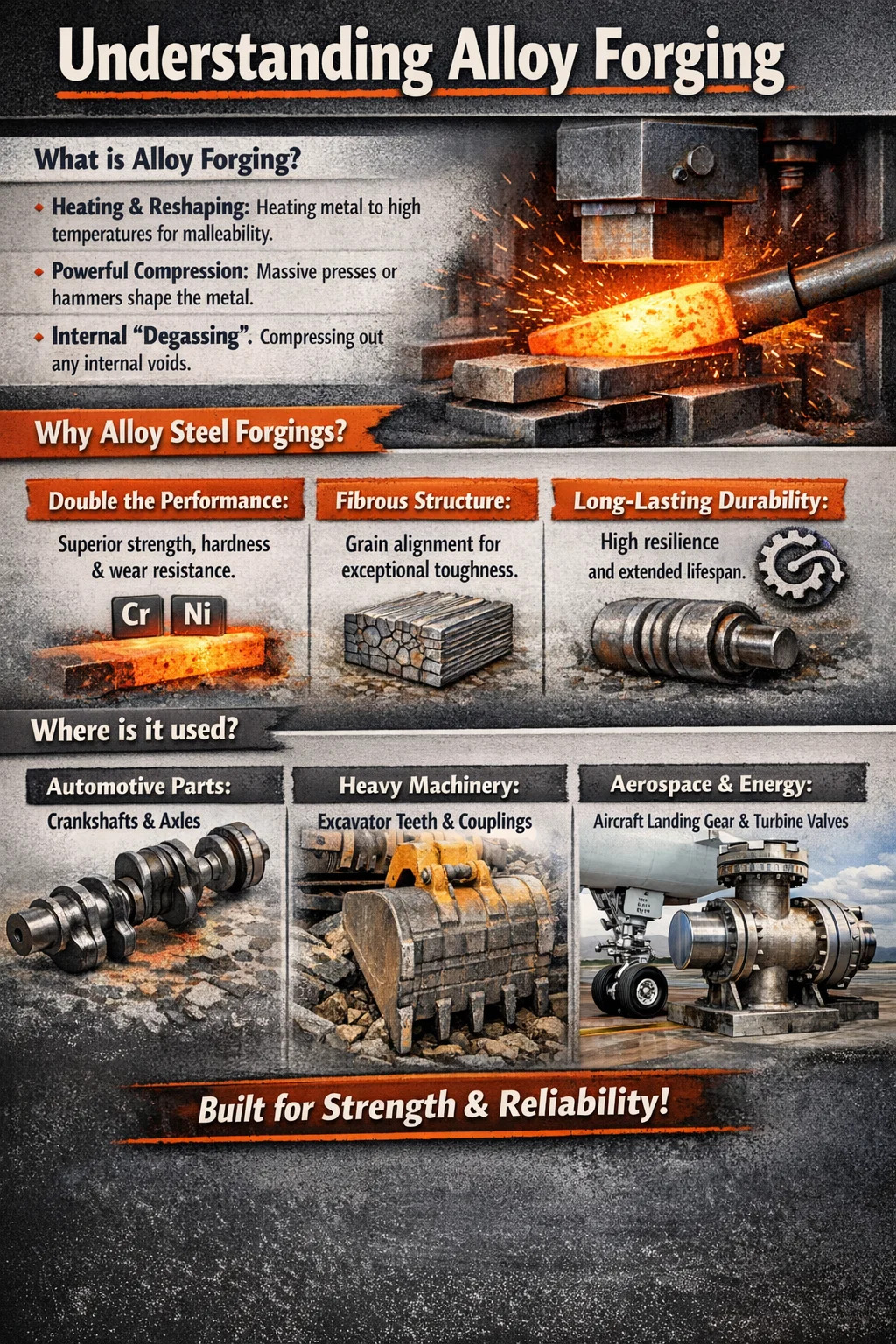Ze względu na wyjątkową wydajność odkuwek ze stali stopowej, są one zwykle stosowane w zastosowaniach wymagających dużych naprężeń: